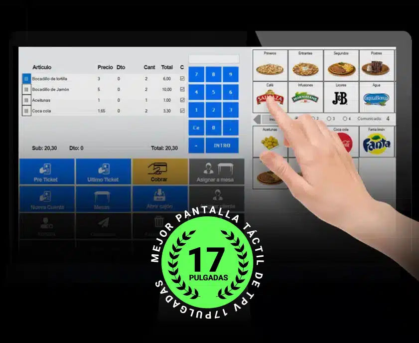 - Um terminal POS poderoso, o único que você encontrará com uma tela de 17 polegadas para que você possa trabalhar confortavelmente.